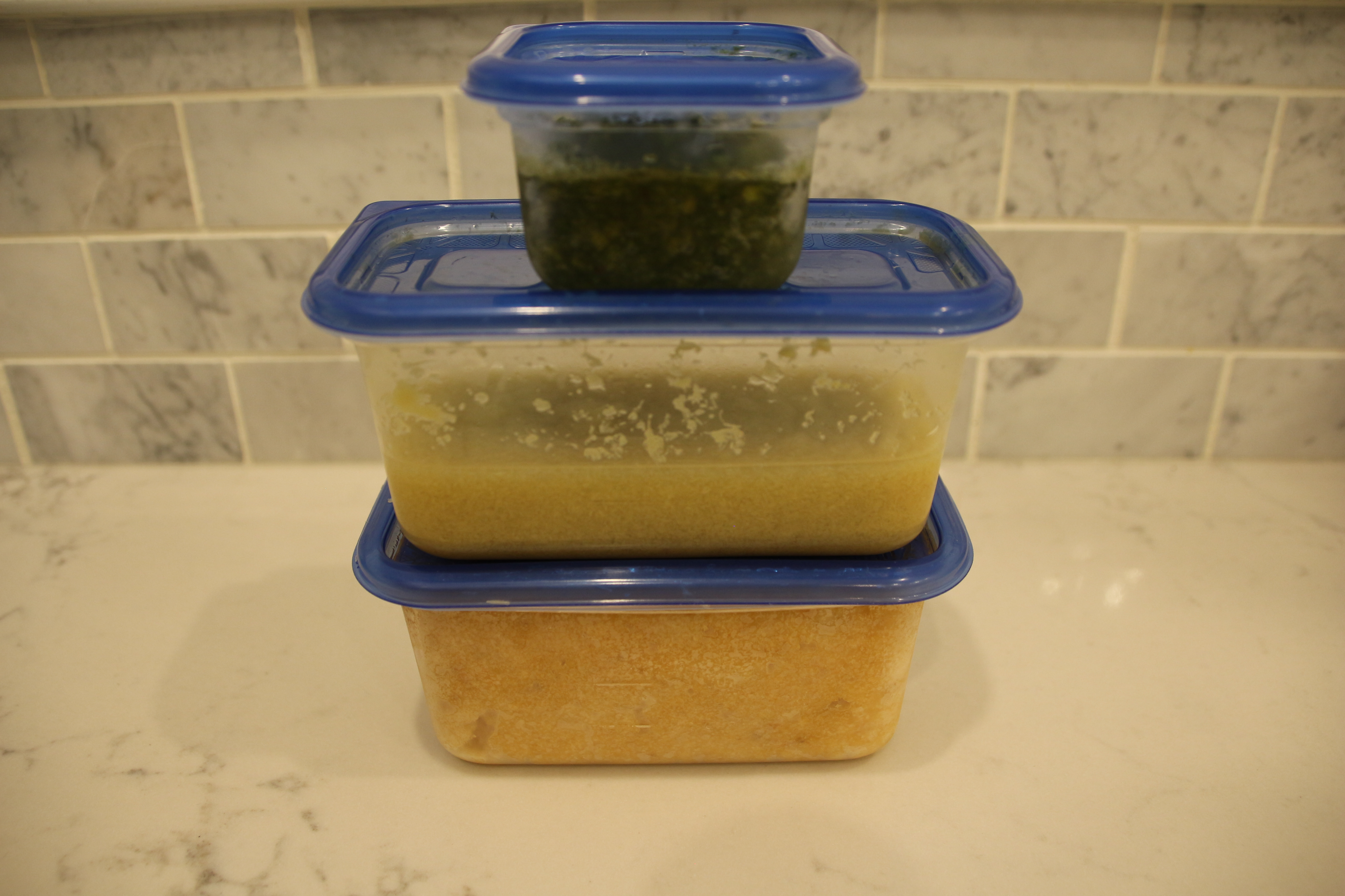 So every couple of months I buy a big batch of all 3. I peel, cut, and puree them and put them in very small Ziploc containers. I pop them in my freezer and take out one container at a time as needed. Honestly, it saves me sooo much time! If you don’t have a lot of freezer space, you can totally put them in ziploc bags.