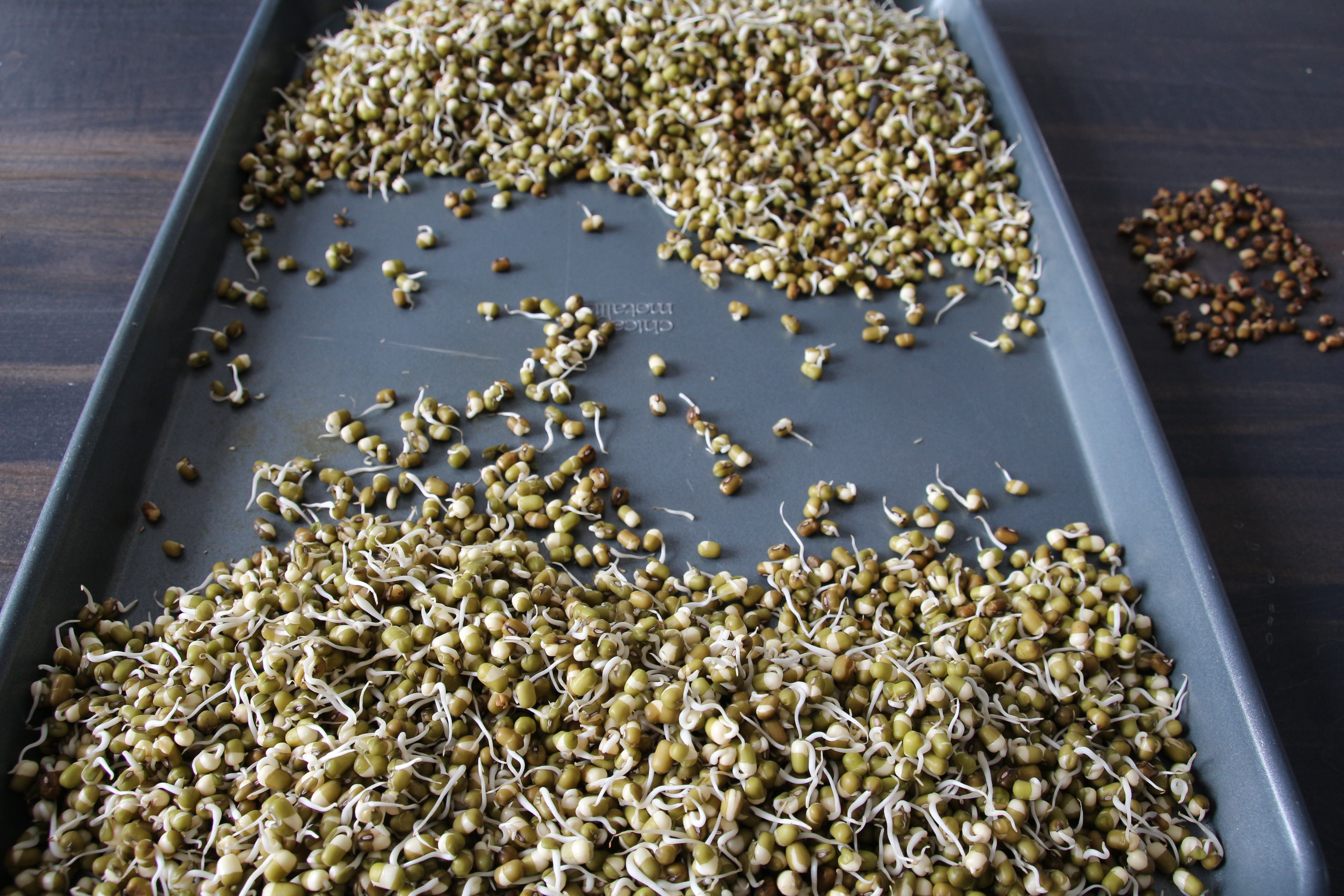 1. Once the beans have sprouted, place them into a tray (see above pic). Pick out any raw ones. You really don’t want to bite on those!