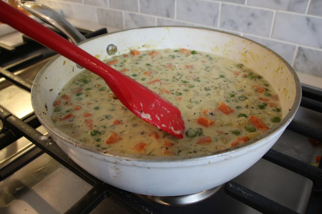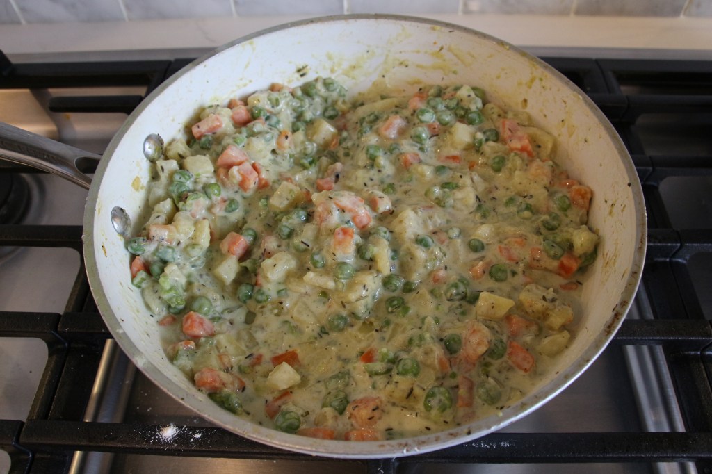 8. Turn off the heat and leave uncovered. Let it cool. This is very important, as the mixture needs to be cool before it goes onto the raw puff pastry dough.