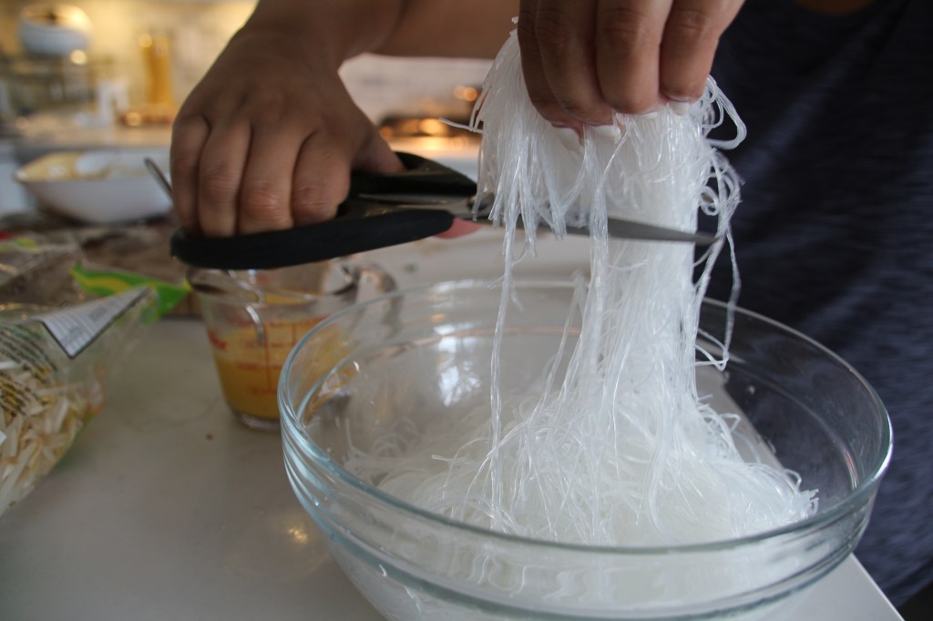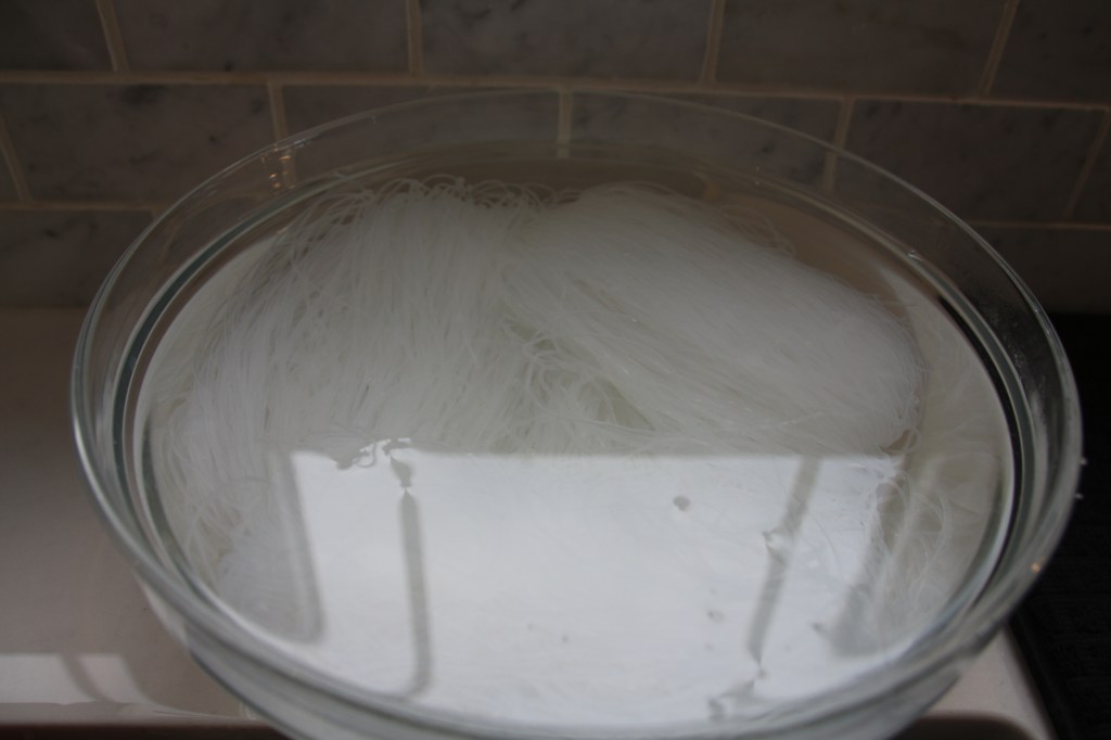 2. Soak the noodles in hot water for about 15 minutes. I use my kettle to warm the water.