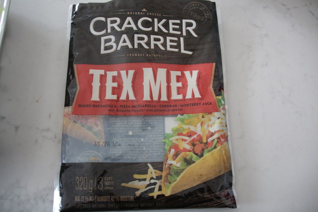 • 1 packet of Cracker Barrel Tex Mex Cheese (pre-shredded)
