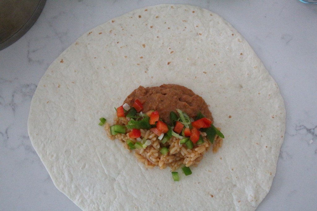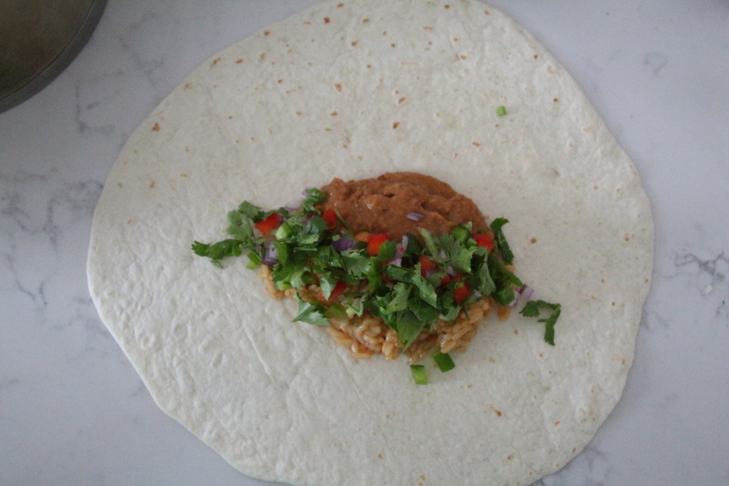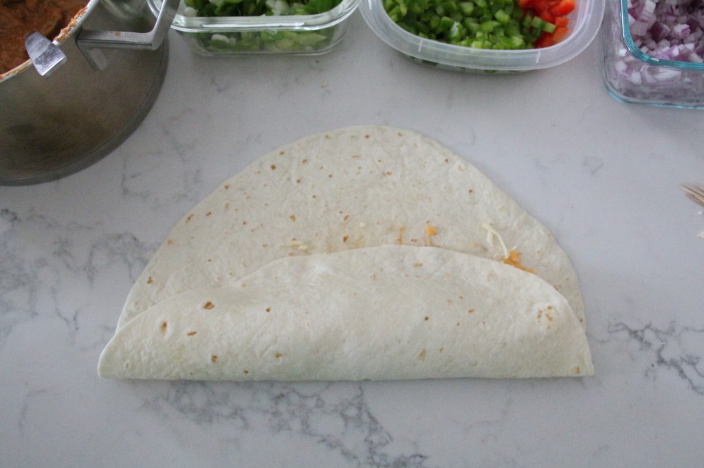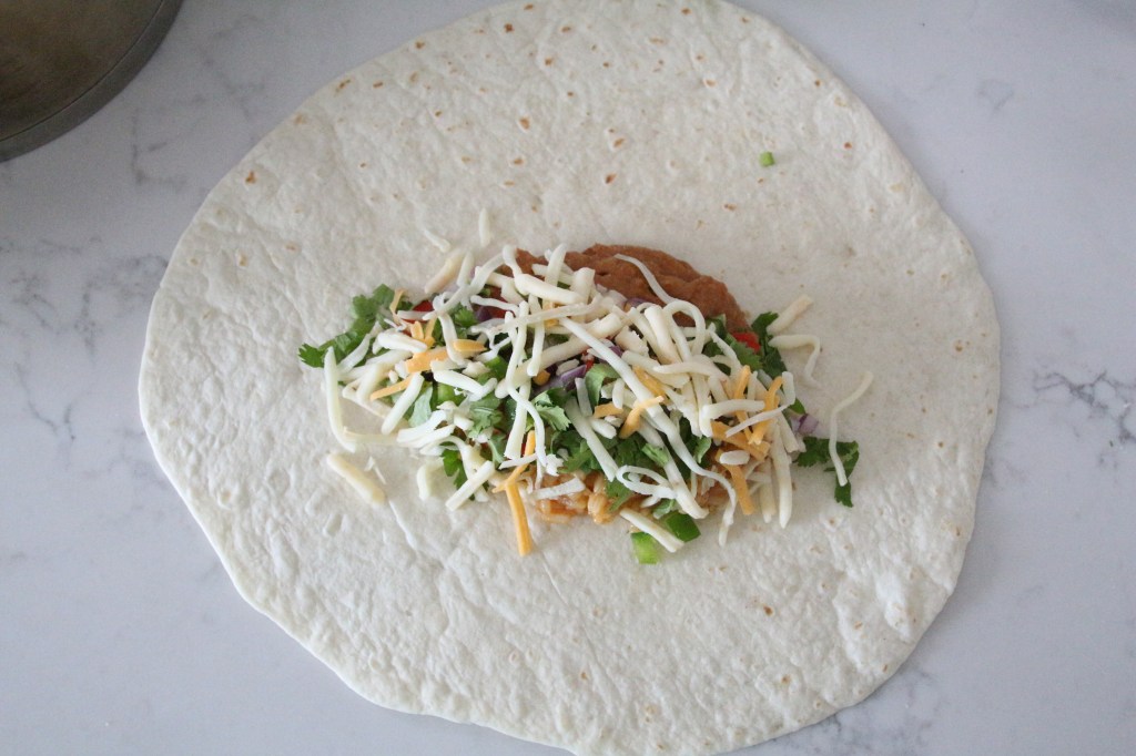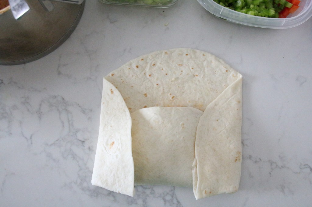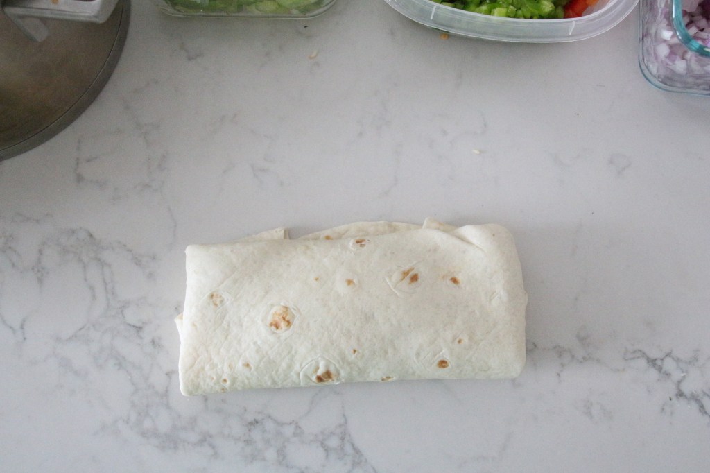 Try to find the LARGEST flour tortillas possible (12” or more). This makes the folding process A LOT easier. Some of the normal size tortillas cannot fill enough ingredients, which is fine, but then you’ll have to make 2 per person. If using the normal 10” tortillas, try not to stuff them as much.