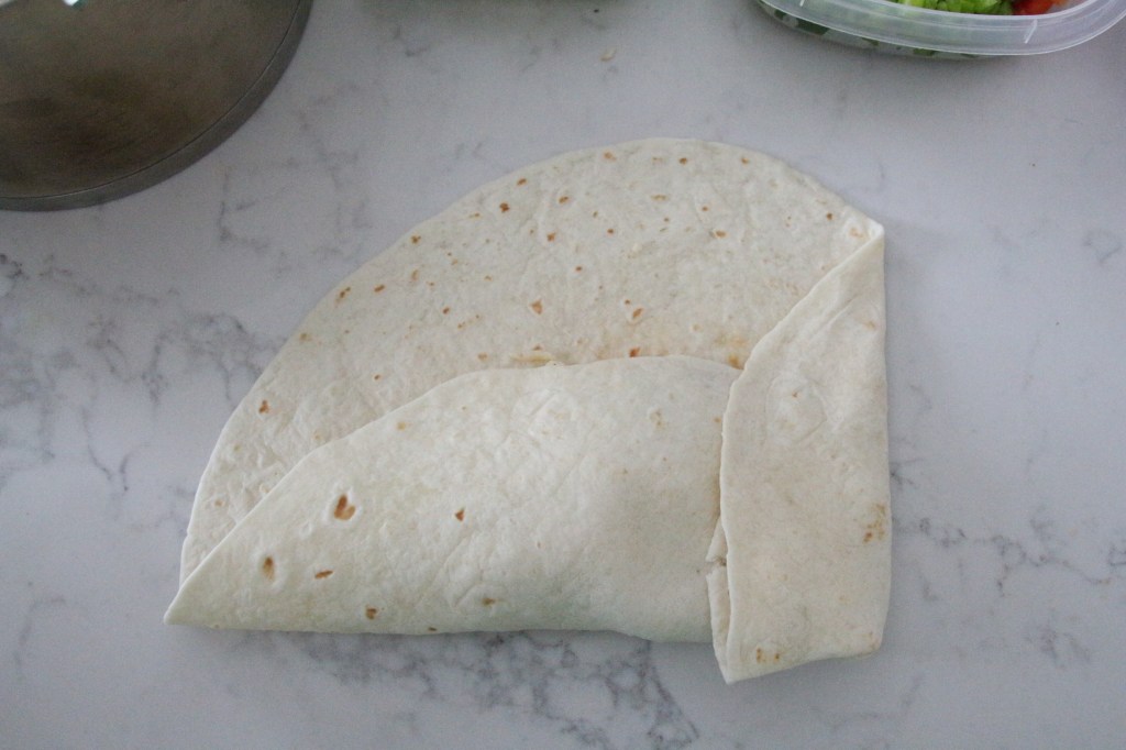 1. Warm 1 tortilla in the microwave for about 20-30 seconds. This helps with the folding process!