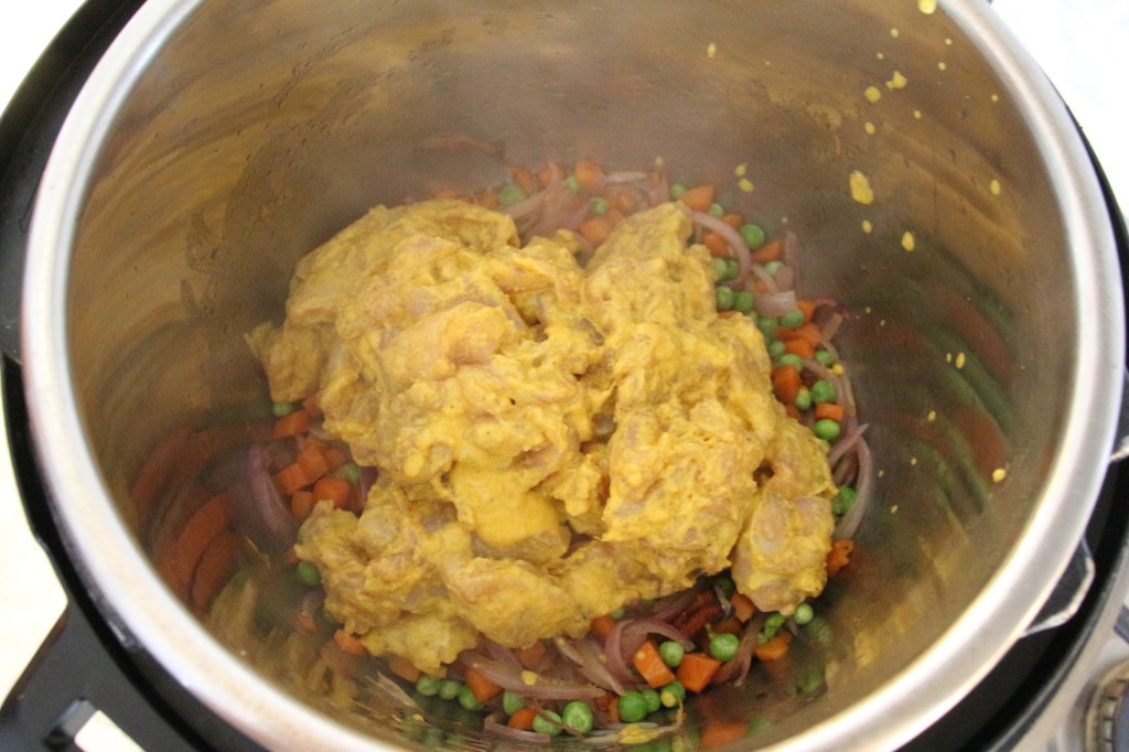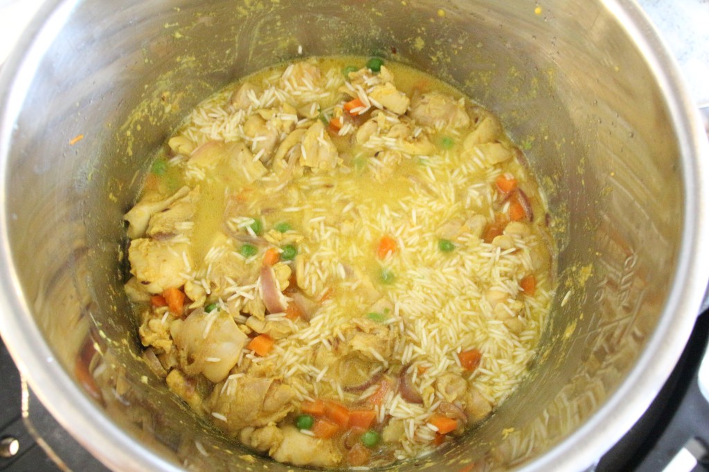When adding the chicken, let it brown a little. Keep the IP saute mode on “more”. If you are doubling the recipe, remember the water to rice ratio is 1:1.