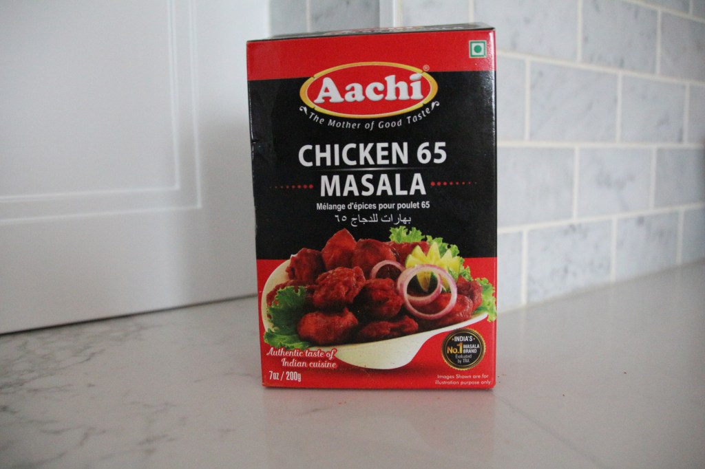 The brand I use is Aachi Chicken 65 Masala. I haven’t tried other brands, so I wouldn’t know if they are good or not, but this one really rocks. Heads up, it is spicy! I don’t add any green chilies whatsoever.