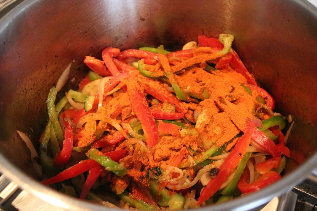 I tweaked his recipe and used a wee bit less spice, more veggies, and of course more cheese! I find pizza mozzarella cheese is sooo yummy! It is available in bricks as well (brands such as Cracker Barrel, Kraft, etc). In this dish, I used a mozzarella ball – that’s all I could find at the store.